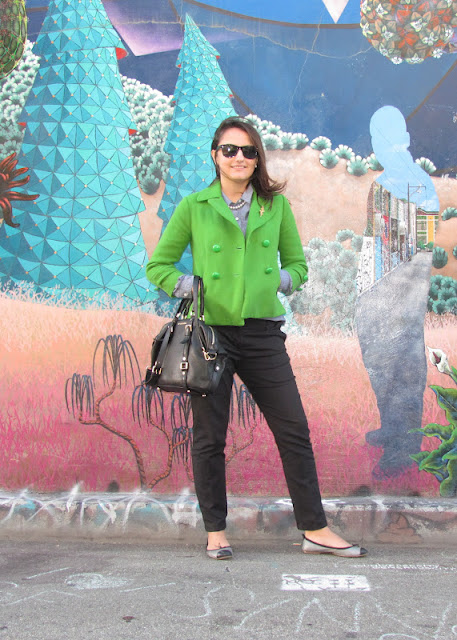 Talbots jacket, Old Navy shirt, Michael Kors Bedford satchel, Zara pants, Bloch flats.